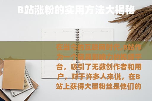在当今的互联网时代,B站作为一个极具影响力的视频平台,吸引了无数创作者和用户,对于许多人来说,在B站上获得大量粉丝是他们的梦想,那么究竟有哪些有效的方法可以实现B站涨粉呢? 质量是关键,要制作出高质量、有创意且独特的视频内容,深入了解你的目标受众,明确他们的兴趣和需求,然后根据这些来策划和制作视频,如果你发现年轻群体对游戏攻略感兴趣,那么你可以精心制作详细且有趣的游戏攻略视频,用生动的解说和精彩的操作展示吸引他们的关注。