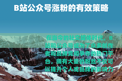 在当今的社交媒体时代,B站和公众号成为了众多创作者和品牌竞相争夺的热门平台,拥有大量的粉丝不仅可以提升个人或品牌的影响力,还能带来更多的商业机会和价值,如何在B站和公众号上实现涨粉呢?以下是一些实用的策略。