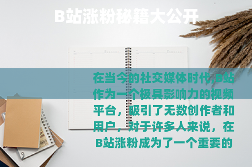 在当今的社交媒体时代,B站作为一个极具影响力的视频平台,吸引了无数创作者和用户,对于许多人来说,在B站涨粉成为了一个重要的目标,因为这不仅能带来更多的关注和认可,还可能为个人或品牌带来更多的机会和收益。