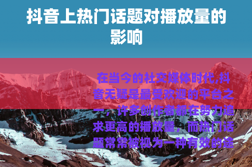 在当今的社交媒体时代,抖音无疑是最受欢迎的平台之一,许多创作者都在努力追求更高的播放量,而热门话题常常被视为一种有效的途径,在抖音上,借助热门话题真的能提高播放量吗?