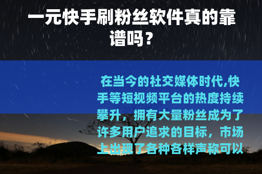 在当今的社交媒体时代,快手等短视频平台的热度持续攀升,拥有大量粉丝成为了许多用户追求的目标,市场上出现了各种各样声称可以帮助用户快速增加粉丝的软件,其中一元快手刷粉丝软件备受关注。