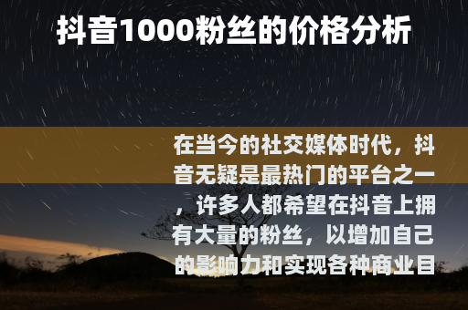 在当今的社交媒体时代,抖音无疑是最热门的平台之一,许多人都希望在抖音上拥有大量的粉丝,以增加自己的影响力和实现各种商业目标,拥有1000粉丝是一个比较基础但又很重要的阶段,抖音1000粉丝多少钱呢?
