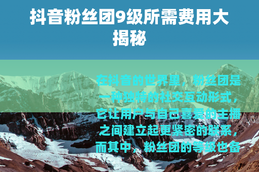 在抖音的世界里,粉丝团是一种独特的社交互动形式,它让用户与自己喜爱的主播之间建立起更紧密的联系,而其中,粉丝团的等级也备受关注,不少人都想知道抖音粉丝团9级需要多少钱呢?