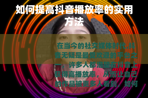 提高抖音播放率需要从多个方面入手,不断优化视频的内容、制作、标题、封面等各个环节,同时积极利用抖音的平台特点和功能,保持稳定的更新,只要坚持不懈地努力,相信你在抖音上一定能够获得越来越高的播放率,让自己的作品在这个庞大的社交平台上绽放光彩。