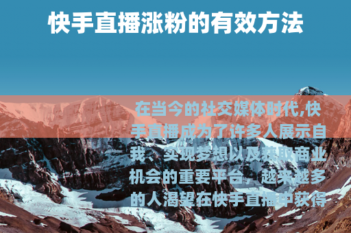 在当今的社交媒体时代,快手直播成为了许多人展示自我、实现梦想以及获取商业机会的重要平台,越来越多的人渴望在快手直播中获得大量粉丝,从而提升自己的影响力和商业价值,如何才能在快手上实现直播涨粉呢?