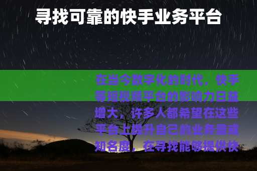 在选择平台时,要充分了解其背景和口碑,查看其过往客户的评价和案例,也要明确平台所提供服务的具体内容和方式,确保其符合快手平台的规定和政策,才能找到一个真正能够助力自己在快手平台上取得成功的业务平台,而不是陷入那些不可靠平台的陷阱之中,避免不必要的损失和风险。