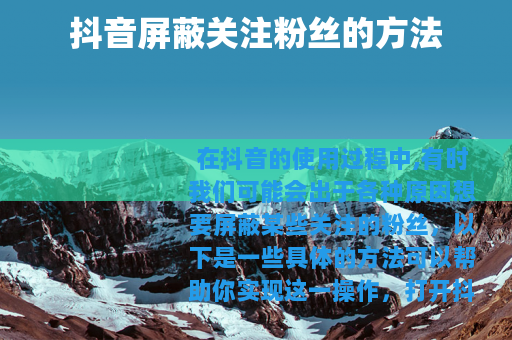 在抖音的使用过程中,有时我们可能会出于各种原因想要屏蔽某些关注的粉丝,以下是一些具体的方法可以帮助你实现这一操作。