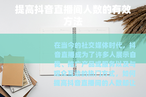 在当今的社交媒体时代,抖音直播成为了许多人展示自我、推广产品或服务以及与观众互动的热门方式,如何提高抖音直播间的人数却让不少人感到困惑,以下是一些能够帮助你提高抖音直播间人数的实用方法。