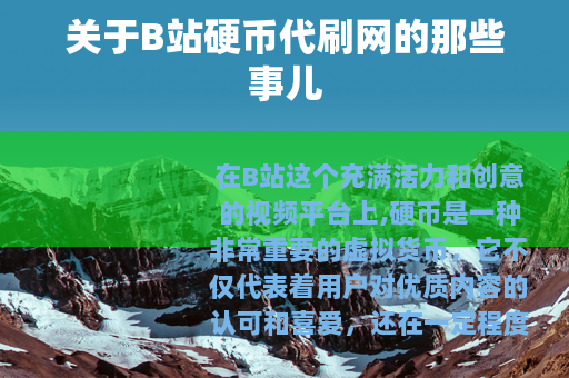 在B站这个充满活力和创意的视频平台上,硬币是一种非常重要的虚拟货币,它不仅代表着用户对优质内容的认可和喜爱,还在一定程度上影响着视频的推荐和排名,许多创作者都希望能够获得更多的硬币,以提升自己作品的影响力,随着需求的增加,一些所谓的“B站硬币代刷网”也应运而生。