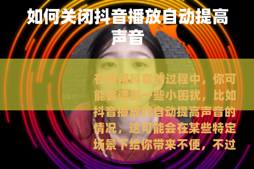 在使用抖音的过程中,你可能会遇到一些小困扰,比如抖音播放时自动提高声音的情况,这可能会在某些特定场景下给你带来不便,不过别担心,关闭这个功能其实很简单。