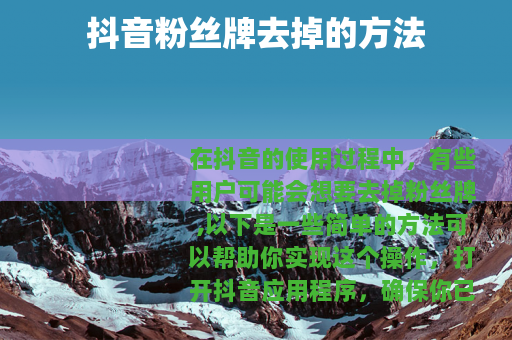 在抖音的使用过程中,有些用户可能会想要去掉粉丝牌,以下是一些简单的方法可以帮助你实现这个操作。