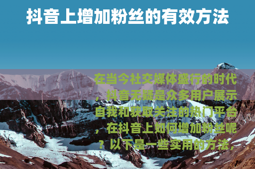 在当今社交媒体盛行的时代,抖音无疑是众多用户展示自我和获取关注的热门平台,在抖音上如何增加粉丝呢?以下是一些实用的方法。