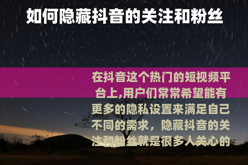在抖音这个热门的短视频平台上,用户们常常希望能有更多的隐私设置来满足自己不同的需求,隐藏抖音的关注和粉丝就是很多人关心的一个功能。
