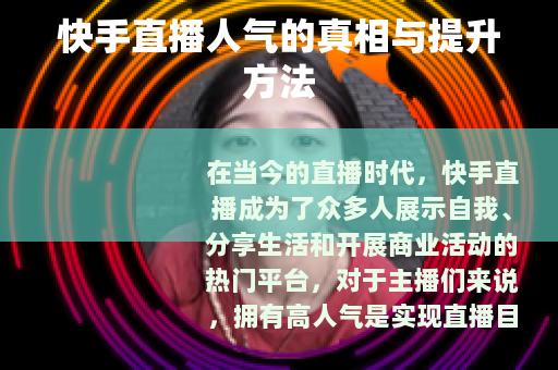 在当今的直播时代,快手直播成为了众多人展示自我、分享生活和开展商业活动的热门平台,对于主播们来说,拥有高人气是实现直播目标的关键之一,如何提升快手直播人气成为了大家关注的焦点。