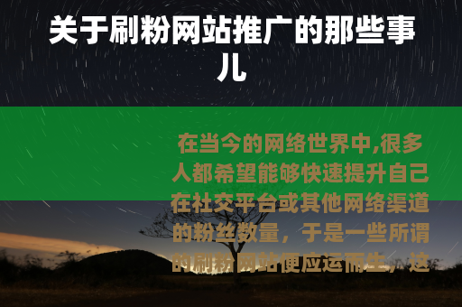 在当今的网络世界中,很多人都希望能够快速提升自己在社交平台或其他网络渠道的粉丝数量,于是一些所谓的刷粉网站便应运而生,这些刷粉网站宣称可以马上为用户刷出大量的粉丝,从而让用户在短时间内获得较高的关注度。