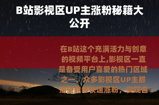 在B站这个充满活力与创意的视频平台上,影视区一直是备受用户喜爱的热门区域之一,众多影视区UP主都渴望能够快速涨粉,实现自己在视频创作领域的价值与梦想,B站影视区UP主究竟如何才能快速涨粉呢?以下是一些实用的方法。 质量是关键,UP主需要确保自己所制作的影视相关视频具有独特性和吸引力,这意味着要在选题上多下功夫,挖掘那些尚未被充分开发但又具有一定受众基础的影视题材,可以聚焦于一些小众但口碑极佳的老电影,通过精心制作的解说、分析或混剪,为观众带来全新的视角和体验,在视频制作过程中,要注重画面质量、音频效果以及剪辑的流畅性,让观众能够在观看过程中感受到专业和用心。