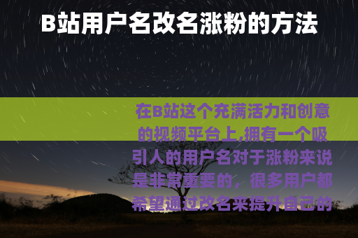 在B站这个充满活力和创意的视频平台上,拥有一个吸引人的用户名对于涨粉来说是非常重要的,很多用户都希望通过改名来提升自己的关注度,那么在B站用户名改名涨粉究竟该怎么改呢?