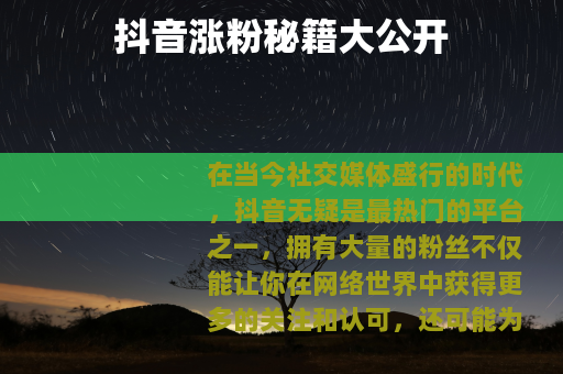 在当今社交媒体盛行的时代,抖音无疑是最热门的平台之一,拥有大量的粉丝不仅能让你在网络世界中获得更多的关注和认可,还可能为你带来各种机会和收益,怎样可以让抖音粉丝多呢?以下是一些实用的方法。
