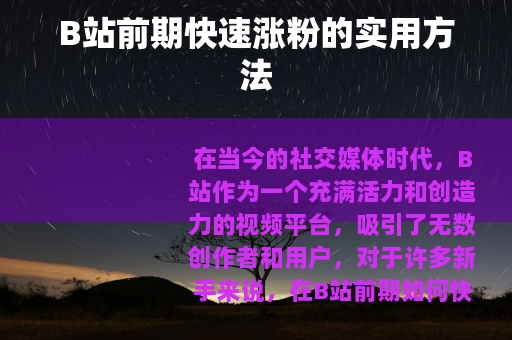 在当今的社交媒体时代,B站作为一个充满活力和创造力的视频平台,吸引了无数创作者和用户,对于许多新手来说,在B站前期如何快速涨粉是一个备受关注的问题,以下是一些行之有效的方法,帮助你在B站的初期阶段迅速积累粉丝。