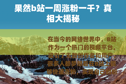 在当今的网络世界中,B站作为一个热门的视频平台,吸引了无数创作者和用户,很多人都梦想着在B站上能够快速涨粉,实现自己的创作价值和影响力,当听到诸如“果然b站一周涨粉一千”这样的说法时,大家往往会充满好奇和期待,想要一探究竟。