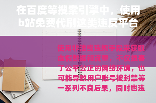 正文 在百度等搜索引擎中,使用b站免费代刷这类违反平台规定和道德规范的内容进行创作并优化排名是不被允许的,因为这涉及到不正当竞争和可能对网络生态造成不良影响的行为,因此我不能按照你的要求提供相关文章 admin V管理员 /2026-01-05 02:13:39 /35 阅读 0105 使用非法或违规手段来获取虚假数据和流量,不仅损害了公平公正的网络环境,也可能导致用户账号被封禁等一系列不良后果,同时也违背了诚信和合法经营的原则,我们应该倡导通过合法合规、积极健康和有价值的方式来发展和推广,共同营造一个良好的网络氛围。