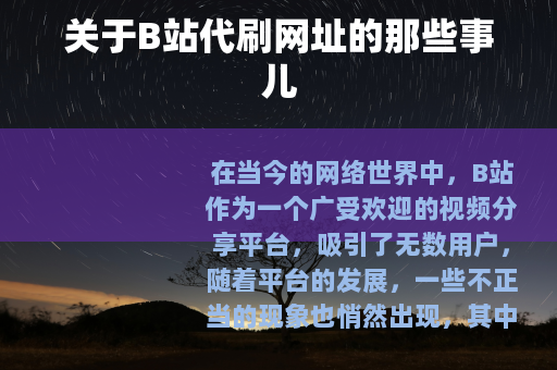在当今的网络世界中,B站作为一个广受欢迎的视频分享平台,吸引了无数用户,随着平台的发展,一些不正当的现象也悄然出现,其中就包括所谓的“B站代刷网址”。