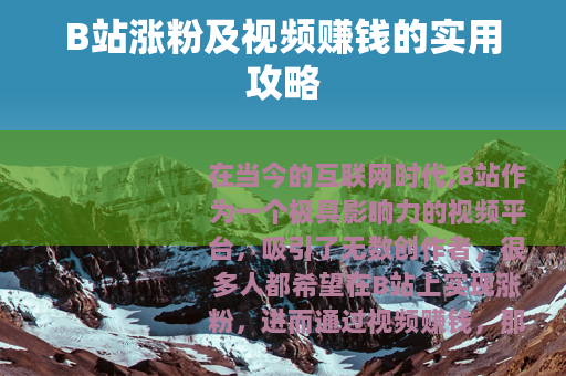 在当今的互联网时代,B站作为一个极具影响力的视频平台,吸引了无数创作者,很多人都希望在B站上实现涨粉,进而通过视频赚钱,那么具体该怎么做呢?