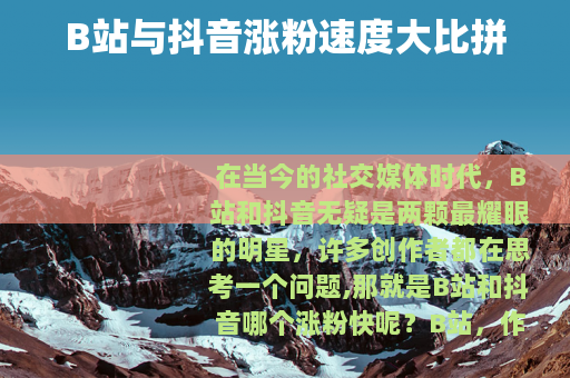 在当今的社交媒体时代,B站和抖音无疑是两颗最耀眼的明星,许多创作者都在思考一个问题,那就是B站和抖音哪个涨粉快呢?