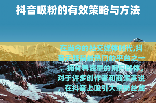 在当今的社交媒体时代,抖音无疑是最热门的平台之一,拥有着海量的用户群体,对于许多创作者和商家来说,在抖音上吸引大量粉丝成为了实现自身价值和商业目标的重要途径。
