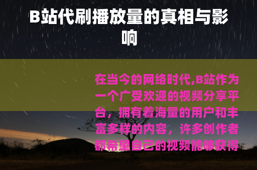 在当今的网络时代,B站作为一个广受欢迎的视频分享平台,拥有着海量的用户和丰富多样的内容,许多创作者都希望自己的视频能够获得更多的播放量,从而提高知名度和影响力,有一种现象逐渐引起了人们的关注,那就是B站代刷播放量的行为。