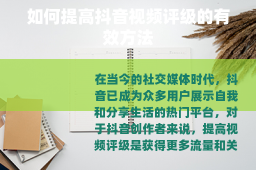 在当今的社交媒体时代,抖音已成为众多用户展示自我和分享生活的热门平台,对于抖音创作者来说,提高视频评级是获得更多流量和关注的关键,究竟该怎么提高抖音视频评级呢? 的质量至关重要,确保你的视频具有清晰的画面和良好的音质,这是吸引观众的基础,拍摄时,要注意光线的运用,避免画面过暗或过亮,同时使用合适的设备以保证视频的稳定性,在内容方面,要提供有价值、有趣、独特的信息或娱乐元素,能够真正引起观众的兴趣和共鸣,你可以分享实用的生活小技巧、精彩的才艺表演、感人的故事或幽默的段子等。