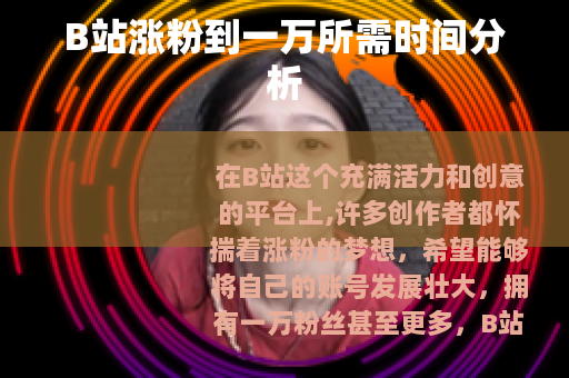 要确切地说B站涨粉到一万需要多久是很难给出一个固定答案的,有些创作者可能在几个月内就能实现这一目标,而对于一些起步较晚或者内容比较小众的创作者来说,可能需要一年甚至更长的时间,但只要坚持优质内容创作,保持积极的运营态度,不断优化自己的创作和推广策略,相信在B站涨粉到一万是完全有可能实现的,并且随着粉丝数量的增长,你的创作之路也会越来越精彩,能在B站这个大舞台上收获更多的认可和支持。
