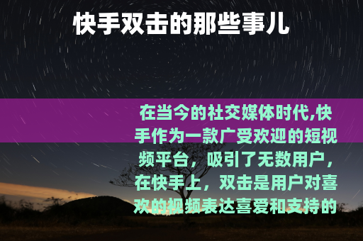 在当今的社交媒体时代,快手作为一款广受欢迎的短视频平台,吸引了无数用户,在快手上,双击是用户对喜欢的视频表达喜爱和支持的一种方式,一个视频的双击量越高,往往意味着它受到了更多人的关注和认可。