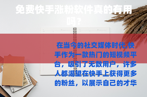 在当今的社交媒体时代,快手作为一款热门的短视频平台,吸引了无数用户,许多人都渴望在快手上获得更多的粉丝,以展示自己的才华或推广自己的产品与服务,免费的快手涨粉软件便应运而生,成为了众多用户关注的焦点。