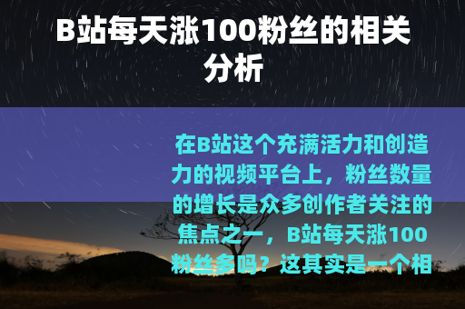 在B站这个充满活力和创造力的视频平台上,粉丝数量的增长是众多创作者关注的焦点之一,B站每天涨100粉丝多吗?这其实是一个相对的问题,需要从多个角度来分析。