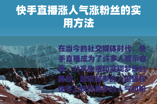 在当今的社交媒体时代,快手直播成为了许多人展示自我、分享生活和实现梦想的舞台,越来越多的人渴望在快手上获得更多的人气和粉丝,从而让自己的直播更具影响力,快手直播如何涨人气涨粉丝呢?以下是一些实用的方法。