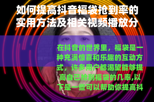 关于相关的方法视频播放,在抖音上有许多创作者会分享自己提高福袋抢到率的经验和技巧视频,这些视频可以为你提供更多的思路和方法,你可以通过搜索相关关键词,如“提高抖音福袋抢到率”等,来找到这些有价值的视频,观看这些视频时,要注意分析其中的方法是否适合自己,并且可以结合自己的实际情况进行尝试和调整。