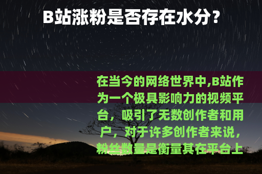 在当今的网络世界中,B站作为一个极具影响力的视频平台,吸引了无数创作者和用户,对于许多创作者来说,粉丝数量是衡量其在平台上影响力和成功与否的一个重要指标,B站涨粉是否存在水分呢?