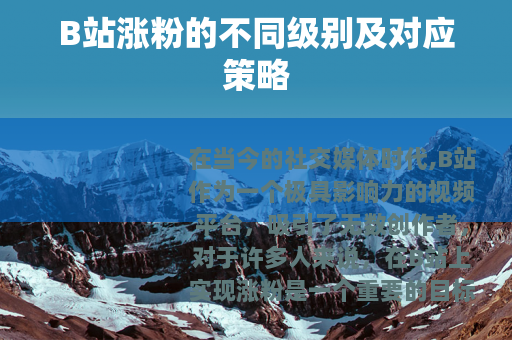 在当今的社交媒体时代,B站作为一个极具影响力的视频平台,吸引了无数创作者,对于许多人来说,在B站上实现涨粉是一个重要的目标,而了解B站涨粉的不同级别以及相应的策略,能帮助创作者们更好地在这个平台上发展。