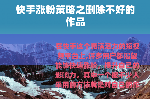 在快手想涨粉,把不好的作品删了是一个值得考虑的策略,它可以帮助我们提升账号的质量和吸引力,为我们在快手上的发展打下更坚实的基础,让我们离涨粉的目标更近一步。