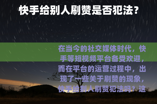 在当今的社交媒体时代,快手等短视频平台备受欢迎,而在平台的运营过程中,出现了一些关于刷赞的现象,快手给别人刷赞犯法吗?这是一个值得深入探讨的问题。