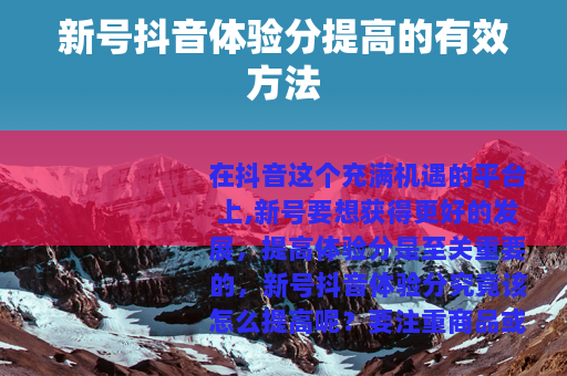 在抖音这个充满机遇的平台上,新号要想获得更好的发展,提高体验分是至关重要的,新号抖音体验分究竟该怎么提高呢?