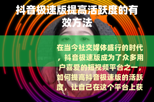 在当今社交媒体盛行的时代,抖音极速版成为了众多用户喜爱的短视频平台之一,如何提高抖音极速版的活跃度,让自己在这个平台上获得更多的乐趣和收益呢?以下是一些实用的方法。