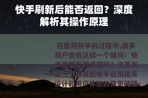 在使用快手的过程中,很多用户会有这样一个疑问:快手刷新后能返回吗?这其实是一个涉及到快手应用程序设计和用户体验的常见问题。