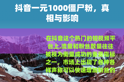 在抖音这个热门的短视频平台上,流量和粉丝数量往往被视为衡量成功的重要指标之一,市场上出现了各种各样声称可以快速增加粉丝的方法和服务,抖音一元1000僵尸粉”的广告引起了不少人的关注。