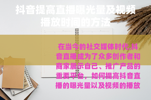 在当今的社交媒体时代,抖音直播成为了众多创作者和商家展示自己、推广产品的重要平台,如何提高抖音直播的曝光量以及视频的播放时间,是许多人都关心的问题,以下是一些有效的方法。