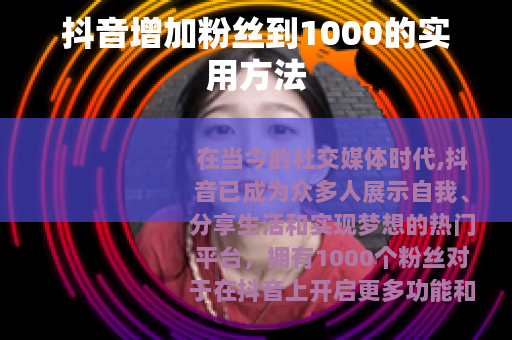 通过以上这些方法的不断实践和优化,你就有机会在抖音上增加粉丝到1000,从而在抖音的世界里开启属于自己的精彩之旅。