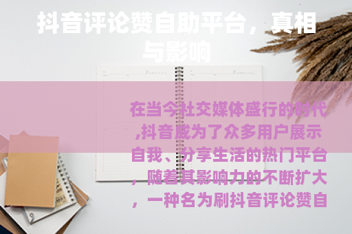 在当今社交媒体盛行的时代,抖音成为了众多用户展示自我、分享生活的热门平台,随着其影响力的不断扩大,一种名为刷抖音评论赞自助平台的现象也逐渐兴起。