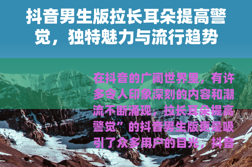 在抖音的广阔世界里,有许多令人印象深刻的内容和潮流不断涌现,拉长耳朵提高警觉”的抖音男生版更是吸引了众多用户的目光。