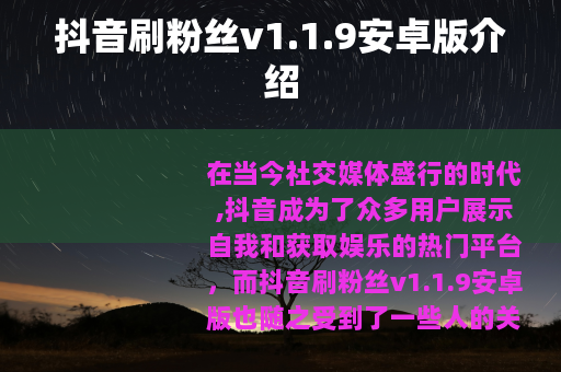 在当今社交媒体盛行的时代,抖音成为了众多用户展示自我和获取娱乐的热门平台,而抖音刷粉丝v1.1.9安卓版也随之受到了一些人的关注。